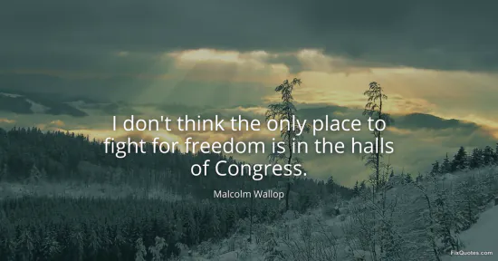 Wallop, Malcolm. "I don't think the only place to fight for freedom is in the halls of Congress." FixQuotes. January 16, 2026. https://fixquotes.com/quotes/i-dont-think-the-only-place-to-fight-for-freedom-127549/.