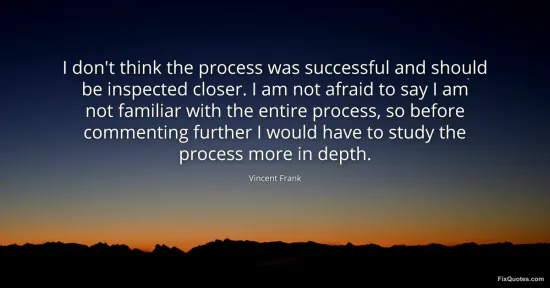 Frank, Vincent. (2026, January 16). I don't think the process was successful and should be inspected closer. I am not afraid to say I am not familiar with the entire process, so before commenting further I would have to study the process more in depth. FixQuotes. https://fixquotes.com/quotes/i-dont-think-the-process-was-successful-and-98011/