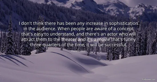 Zucker, David. "I don't think there has been any increase in sophistication in the audience. When people are aware of a concept that's easy to understand, and there's an actor who will attract them to the theater and it's a movie that's funny three-quarters of the time, it will be successful." FixQuotes. January 16, 2026. https://fixquotes.com/quotes/i-dont-think-there-has-been-any-increase-in-104187/.