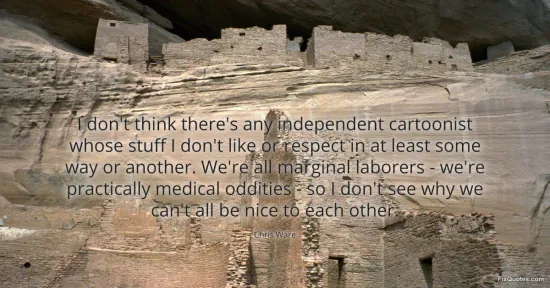Ware, Chris. (2026, January 16). I don't think there's any independent cartoonist whose stuff I don't like or respect in at least some way or another. We're all marginal laborers - we're practically medical oddities - so I don't see why we can't all be nice to each other. FixQuotes. https://fixquotes.com/quotes/i-dont-think-theres-any-independent-cartoonist-110040/