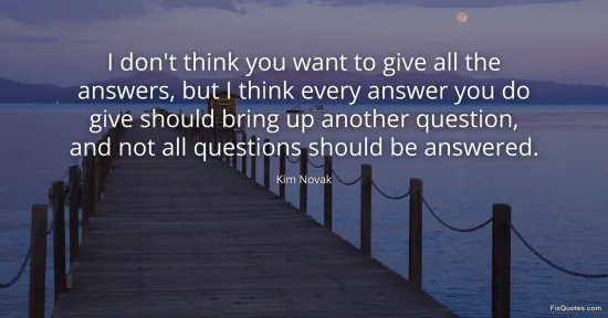 Novak, Kim. (2026, January 16). I don't think you want to give all the answers, but I think every answer you do give should bring up another question, and not all questions should be answered. FixQuotes. https://fixquotes.com/quotes/i-dont-think-you-want-to-give-all-the-answers-but-103451/