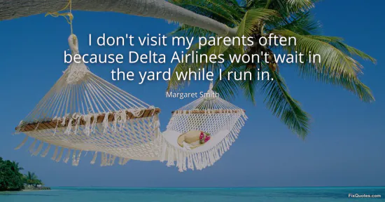 Smith, Margaret. "I don't visit my parents often because Delta Airlines won't wait in the yard while I run in." FixQuotes. January 16, 2026. https://fixquotes.com/quotes/i-dont-visit-my-parents-often-because-delta-112947/.
