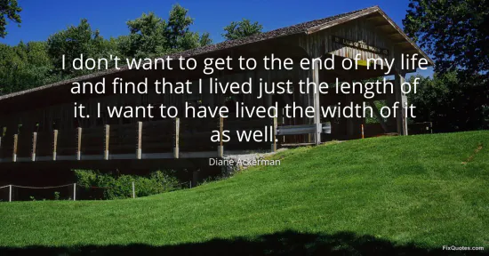 Ackerman, Diane. (2026, January 15). I don't want to get to the end of my life and find that I lived just the length of it. I want to have lived the width of it as well. FixQuotes. https://fixquotes.com/quotes/i-dont-want-to-get-to-the-end-of-my-life-and-find-118398/