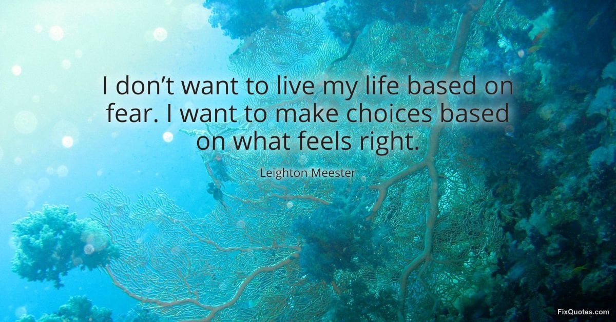 Meester, Leighton. (2026, February 14). I don’t want to live my life based on fear. I want to make choices based on what feels right. FixQuotes. https://fixquotes.com/quotes/i-dont-want-to-live-my-life-based-on-fear-i-want-185339/