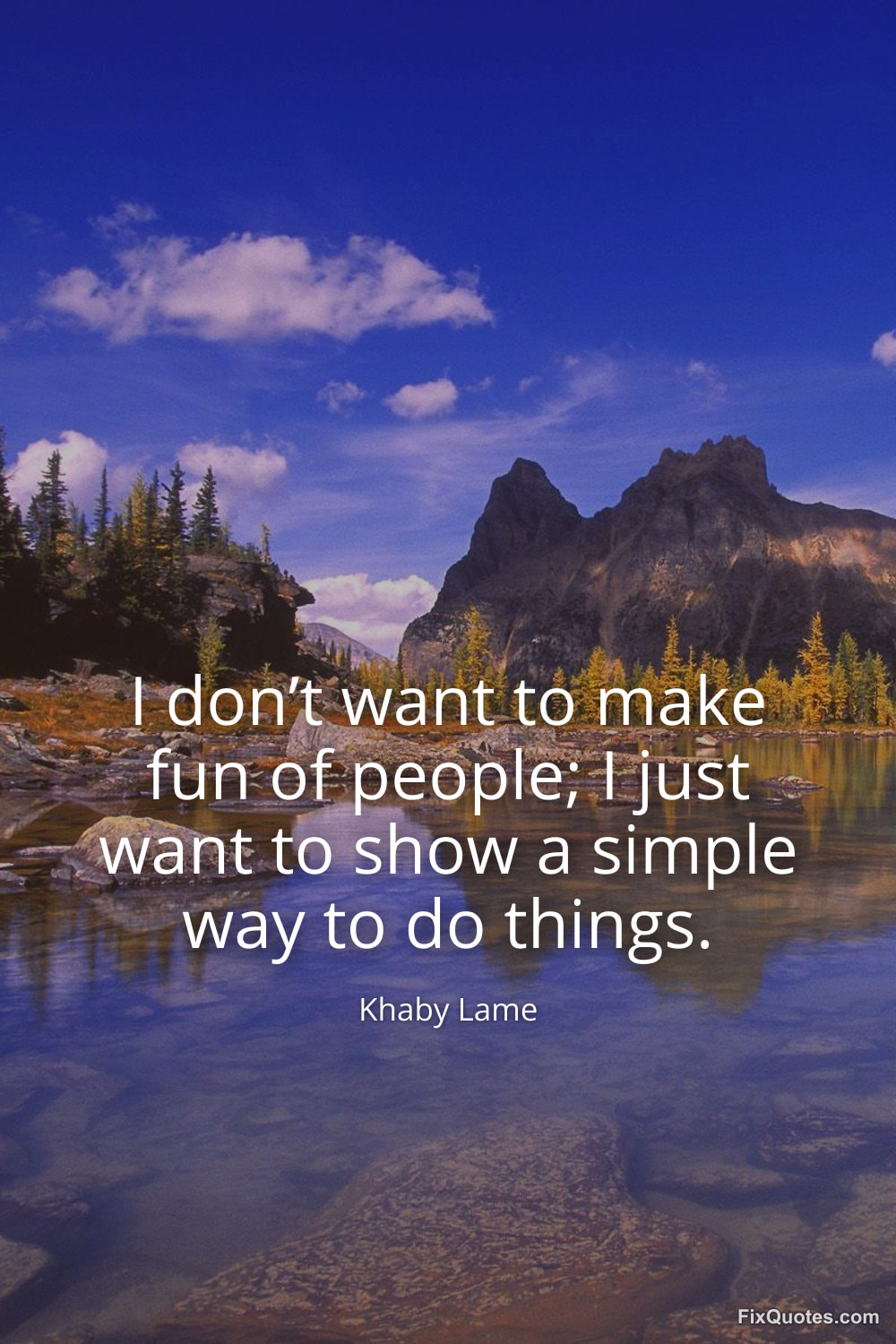 Lame, Khaby. "I don’t want to make fun of people; I just want to show a simple way to do things." FixQuotes. January 30, 2026. https://fixquotes.com/quotes/i-dont-want-to-make-fun-of-people-i-just-want-to-184752/.