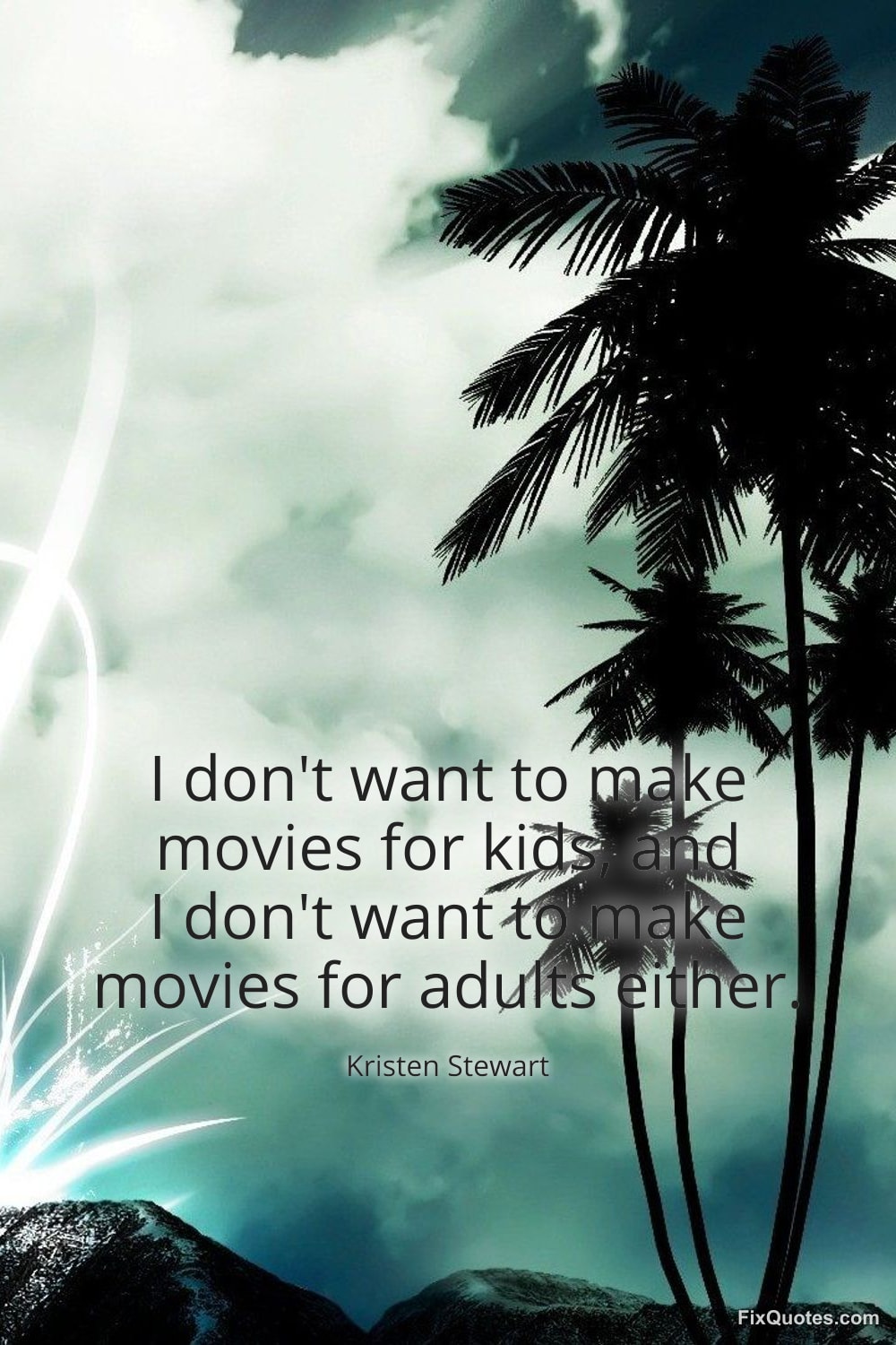 Stewart, Kristen. (2026, January 16). I don't want to make movies for kids, and I don't want to make movies for adults either. FixQuotes. https://fixquotes.com/quotes/i-dont-want-to-make-movies-for-kids-and-i-dont-99704/