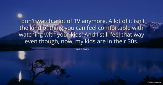 Conway, Tim. (2026, January 16). I don't watch a lot of TV anymore. A lot of it isn't the kind of thing you can feel comfortable with watching with your kids. And I still feel that way even though, now, my kids are in their 30s. FixQuotes. https://fixquotes.com/quotes/i-dont-watch-a-lot-of-tv-anymore-a-lot-of-it-isnt-96178/