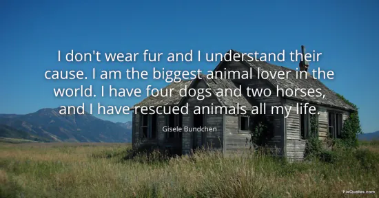 Bundchen, Gisele. (2026, January 15). I don't wear fur and I understand their cause. I am the biggest animal lover in the world. I have four dogs and two horses, and I have rescued animals all my life. FixQuotes. https://fixquotes.com/quotes/i-dont-wear-fur-and-i-understand-their-cause-i-am-164733/