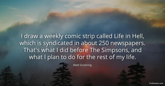 Groening, Matt. "I draw a weekly comic strip called Life in Hell, which is syndicated in about 250 newspapers. That's what I did before The Simpsons, and what I plan to do for the rest of my life." FixQuotes. January 16, 2026. https://fixquotes.com/quotes/i-draw-a-weekly-comic-strip-called-life-in-hell-99756/.