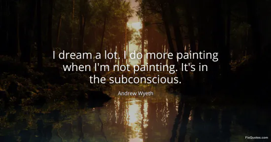 Wyeth, Andrew. (2026, January 18). I dream a lot. I do more painting when I'm not painting. It's in the subconscious. FixQuotes. https://fixquotes.com/quotes/i-dream-a-lot-i-do-more-painting-when-im-not-18485/