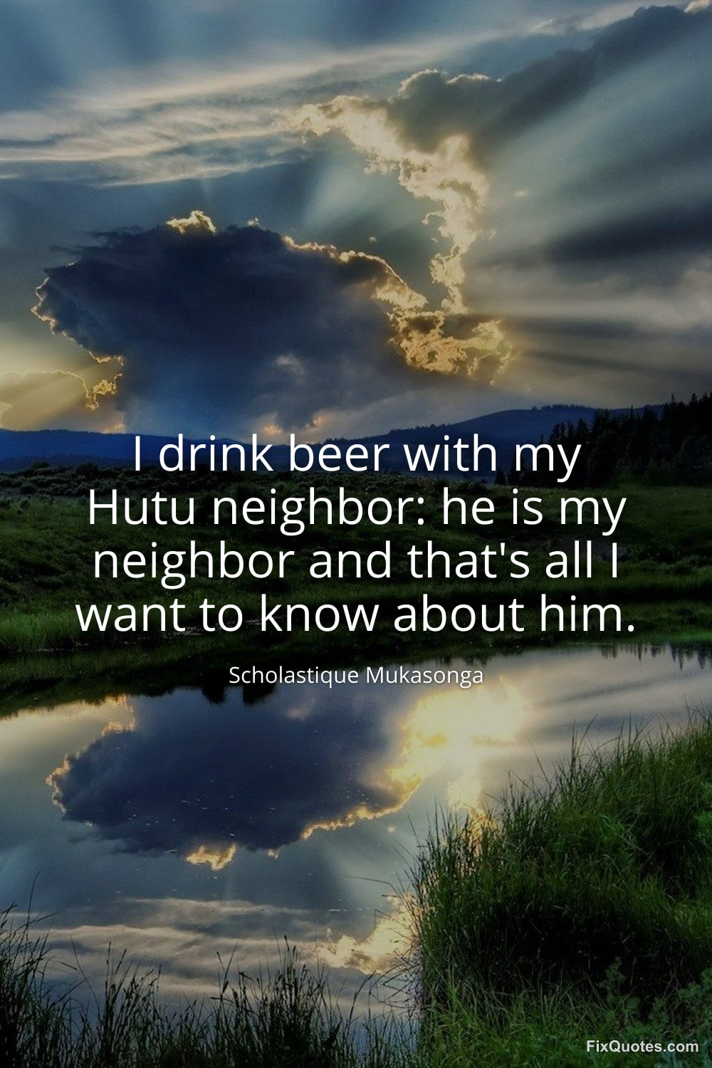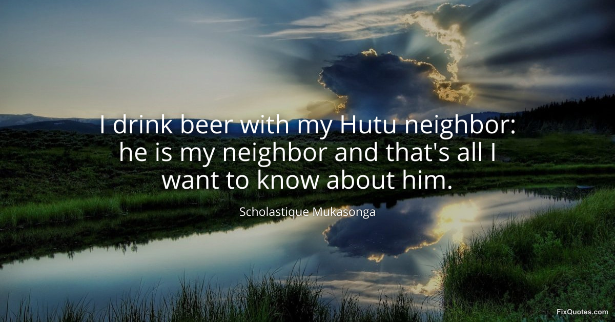 Mukasonga, Scholastique. "I drink beer with my Hutu neighbor: he is my neighbor and that's all I want to know about him." FixQuotes. February 16, 2026. https://fixquotes.com/quotes/i-drink-beer-with-my-hutu-neighbor-he-is-my-185456/.