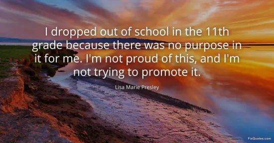 Presley, Lisa Marie. "I dropped out of school in the 11th grade because there was no purpose in it for me. I'm not proud of this, and I'm not trying to promote it." FixQuotes. January 15, 2026. https://fixquotes.com/quotes/i-dropped-out-of-school-in-the-11th-grade-because-48946/.