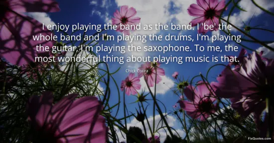 Corea, Chick. "I enjoy playing the band as the band. I 'be' the whole band and I'm playing the drums, I'm playing the guitar, I'm playing the saxophone. To me, the most wonderful thing about playing music is that." FixQuotes. January 15, 2026. https://fixquotes.com/quotes/i-enjoy-playing-the-band-as-the-band-i-be-the-169861/.