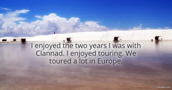 Enya. "I enjoyed the two years I was with Clannad. I enjoyed touring. We toured a lot in Europe." FixQuotes. January 17, 2026. https://fixquotes.com/quotes/i-enjoyed-the-two-years-i-was-with-clannad-i-70402/.