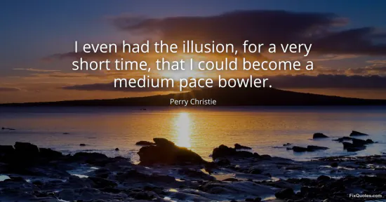 Christie, Perry. "I even had the illusion, for a very short time, that I could become a medium pace bowler." FixQuotes. January 15, 2026. https://fixquotes.com/quotes/i-even-had-the-illusion-for-a-very-short-time-171042/.
