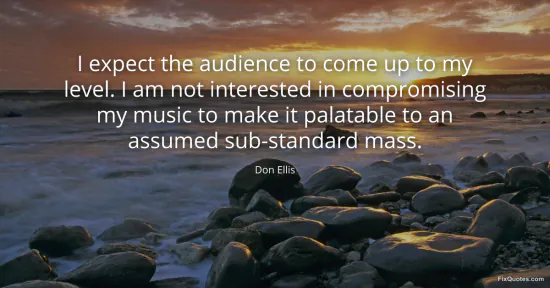 Ellis, Don. "I expect the audience to come up to my level. I am not interested in compromising my music to make it palatable to an assumed sub-standard mass." FixQuotes. January 17, 2026. https://fixquotes.com/quotes/i-expect-the-audience-to-come-up-to-my-level-i-am-47661/.