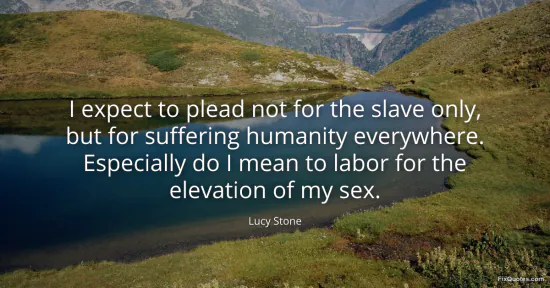 Stone, Lucy. (2026, January 15). I expect to plead not for the slave only, but for suffering humanity everywhere. Especially do I mean to labor for the elevation of my sex. FixQuotes. https://fixquotes.com/quotes/i-expect-to-plead-not-for-the-slave-only-but-for-160482/