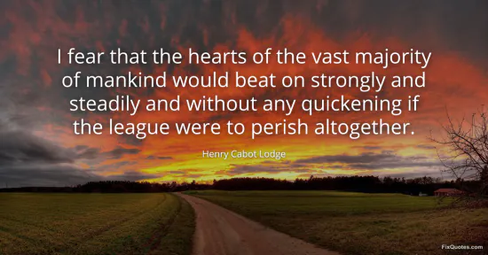 Lodge, Henry Cabot. "I fear that the hearts of the vast majority of mankind would beat on strongly and steadily and without any quickening if the league were to perish altogether." FixQuotes. January 17, 2026. https://fixquotes.com/quotes/i-fear-that-the-hearts-of-the-vast-majority-of-48870/.
