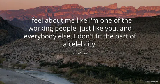 Watson, Doc. "I feel about me like I'm one of the working people, just like you, and everybody else. I don't fit the part of a celebrity." FixQuotes. January 15, 2026. https://fixquotes.com/quotes/i-feel-about-me-like-im-one-of-the-working-people-161229/.