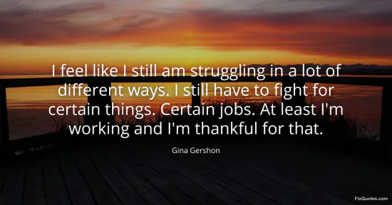 Gershon, Gina. (2026, January 17). I feel like I still am struggling in a lot of different ways. I still have to fight for certain things. Certain jobs. At least I'm working and I'm thankful for that. FixQuotes. https://fixquotes.com/quotes/i-feel-like-i-still-am-struggling-in-a-lot-of-53115/