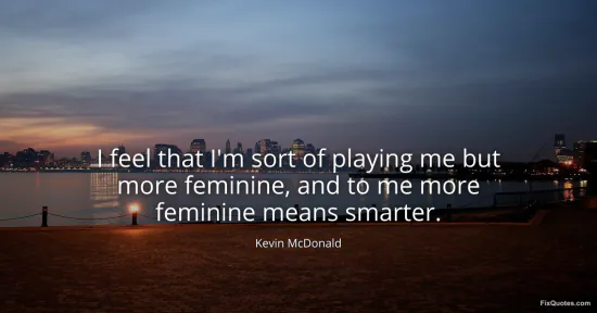 McDonald, Kevin. (2026, January 18). I feel that I'm sort of playing me but more feminine, and to me more feminine means smarter. FixQuotes. https://fixquotes.com/quotes/i-feel-that-im-sort-of-playing-me-but-more-7783/