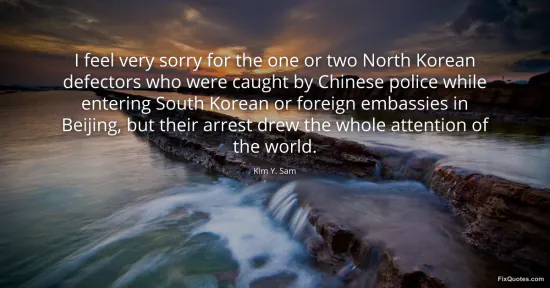 Sam, Kim Y. "I feel very sorry for the one or two North Korean defectors who were caught by Chinese police while entering South Korean or foreign embassies in Beijing, but their arrest drew the whole attention of the world." FixQuotes. January 17, 2026. https://fixquotes.com/quotes/i-feel-very-sorry-for-the-one-or-two-north-korean-54148/.