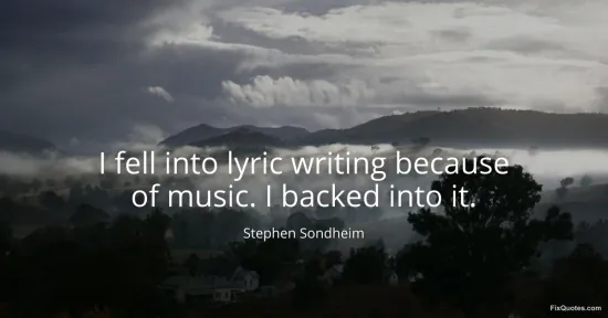 Sondheim, Stephen. (2026, January 16). I fell into lyric writing because of music. I backed into it. FixQuotes. https://fixquotes.com/quotes/i-fell-into-lyric-writing-because-of-music-i-102493/
