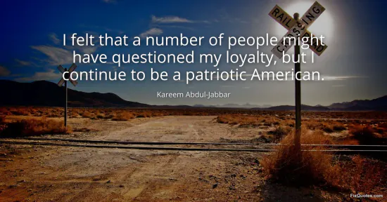 Abdul-Jabbar, Kareem. "I felt that a number of people might have questioned my loyalty, but I continue to be a patriotic American." FixQuotes. January 15, 2026. https://fixquotes.com/quotes/i-felt-that-a-number-of-people-might-have-152057/.