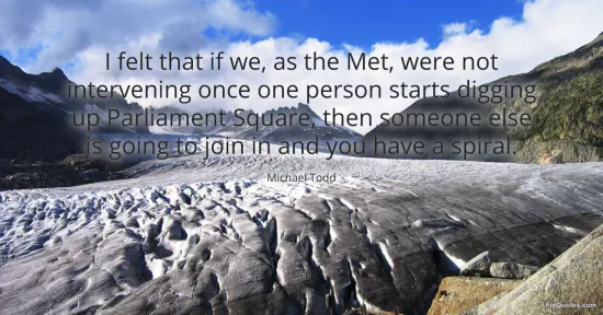 Todd, Michael. "I felt that if we, as the Met, were not intervening once one person starts digging up Parliament Square, then someone else is going to join in and you have a spiral." FixQuotes. January 15, 2026. https://fixquotes.com/quotes/i-felt-that-if-we-as-the-met-were-not-intervening-169043/.