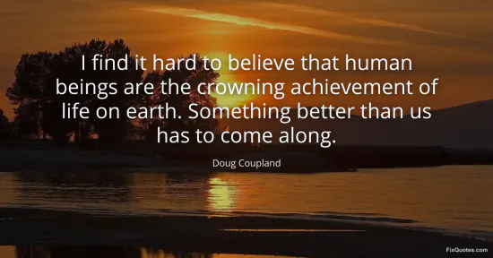Coupland, Doug. (2026, January 17). I find it hard to believe that human beings are the crowning achievement of life on earth. Something better than us has to come along. FixQuotes. https://fixquotes.com/quotes/i-find-it-hard-to-believe-that-human-beings-are-49070/