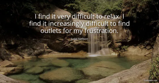 Nelson, Judd. (2026, January 16). I find it very difficult to relax. I find it increasingly difficult to find outlets for my frustration. FixQuotes. https://fixquotes.com/quotes/i-find-it-very-difficult-to-relax-i-find-it-114536/