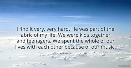 Gibb, Robin. (2026, January 16). I find it very, very hard. He was part of the fabric of my life. We were kids together, and teenagers. We spent the whole of our lives with each other because of our music. FixQuotes. https://fixquotes.com/quotes/i-find-it-very-very-hard-he-was-part-of-the-118028/
