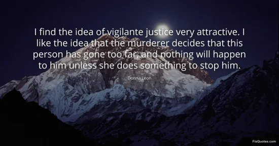 Leon, Donna. "I find the idea of vigilante justice very attractive. I like the idea that the murderer decides that this person has gone too far, and nothing will happen to him unless she does something to stop him." FixQuotes. January 17, 2026. https://fixquotes.com/quotes/i-find-the-idea-of-vigilante-justice-very-53217/.
