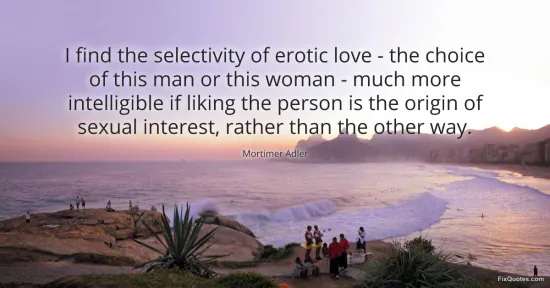 Adler, Mortimer. "I find the selectivity of erotic love - the choice of this man or this woman - much more intelligible if liking the person is the origin of sexual interest, rather than the other way." FixQuotes. January 18, 2026. https://fixquotes.com/quotes/i-find-the-selectivity-of-erotic-love-the-99/.