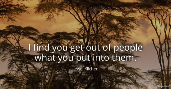 Kilcher, Jewel. (2026, January 17). I find you get out of people what you put into them. FixQuotes. https://fixquotes.com/quotes/i-find-you-get-out-of-people-what-you-put-into-80301/