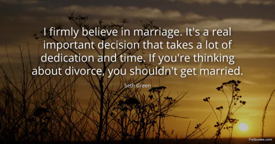 Green, Seth. (2026, February 16). I firmly believe in marriage. It's a real important decision that takes a lot of dedication and time. If you're thinking about divorce, you shouldn't get married. FixQuotes. https://fixquotes.com/quotes/i-firmly-believe-in-marriage-its-a-real-important-164983/