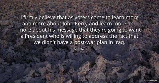 Ford, Harold. (2026, January 17). I firmly believe that as voters come to learn more and more about John Kerry and learn more and more about his message that they're going to want a President who is willing to address the fact that we didn't have a post-war plan in Iraq. FixQuotes. https://fixquotes.com/quotes/i-firmly-believe-that-as-voters-come-to-learn-47756/