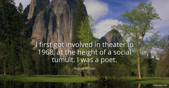 Wilson, August. "I first got involved in theater in 1968, at the height of a social tumult. I was a poet." FixQuotes. January 17, 2026. https://fixquotes.com/quotes/i-first-got-involved-in-theater-in-1968-at-the-42725/.
