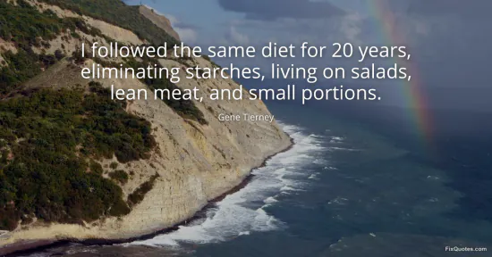 Tierney, Gene. (2026, January 15). I followed the same diet for 20 years, eliminating starches, living on salads, lean meat, and small portions. FixQuotes. https://fixquotes.com/quotes/i-followed-the-same-diet-for-20-years-eliminating-163378/