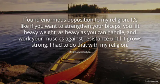 Montalban, Ricardo. (2026, January 15). I found enormous opposition to my religion. It's like if you want to strengthen your biceps, you lift heavy weight, as heavy as you can handle, and work your muscles against resistance until it grows strong. I had to do that with my religion. FixQuotes. https://fixquotes.com/quotes/i-found-enormous-opposition-to-my-religion-its-153173/