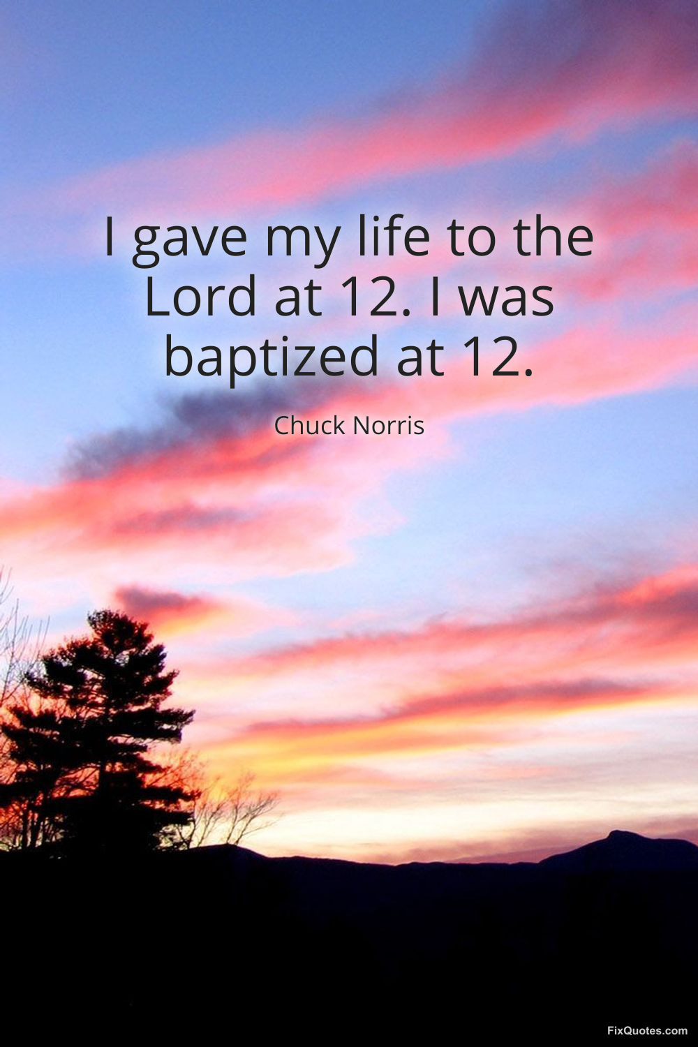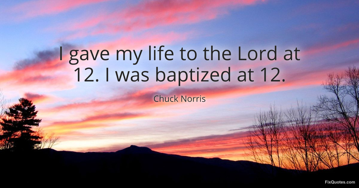 Norris, Chuck. (2026, March 20). I gave my life to the Lord at 12. I was baptized at 12. FixQuotes. https://fixquotes.com/quotes/i-gave-my-life-to-the-lord-at-12-i-was-baptized-186230/