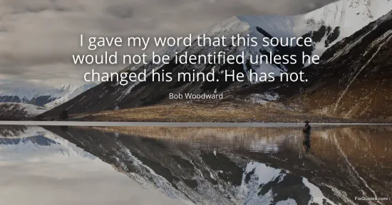 Woodward, Bob. "I gave my word that this source would not be identified unless he changed his mind. He has not." FixQuotes. January 17, 2026. https://fixquotes.com/quotes/i-gave-my-word-that-this-source-would-not-be-46117/.