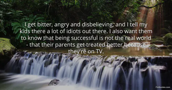 "I get bitter, angry and disbelieving, and I tell my kids there a lot of idiots out there. I also want them to know that being successful is not the real world - that their parents get treated better because they're on TV." FixQuotes, 18 Feb. 2026, https://fixquotes.com/quotes/i-get-bitter-angry-and-disbelieving-and-i-tell-my-61627/. Accessed 22 Feb. 2026.