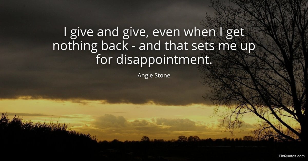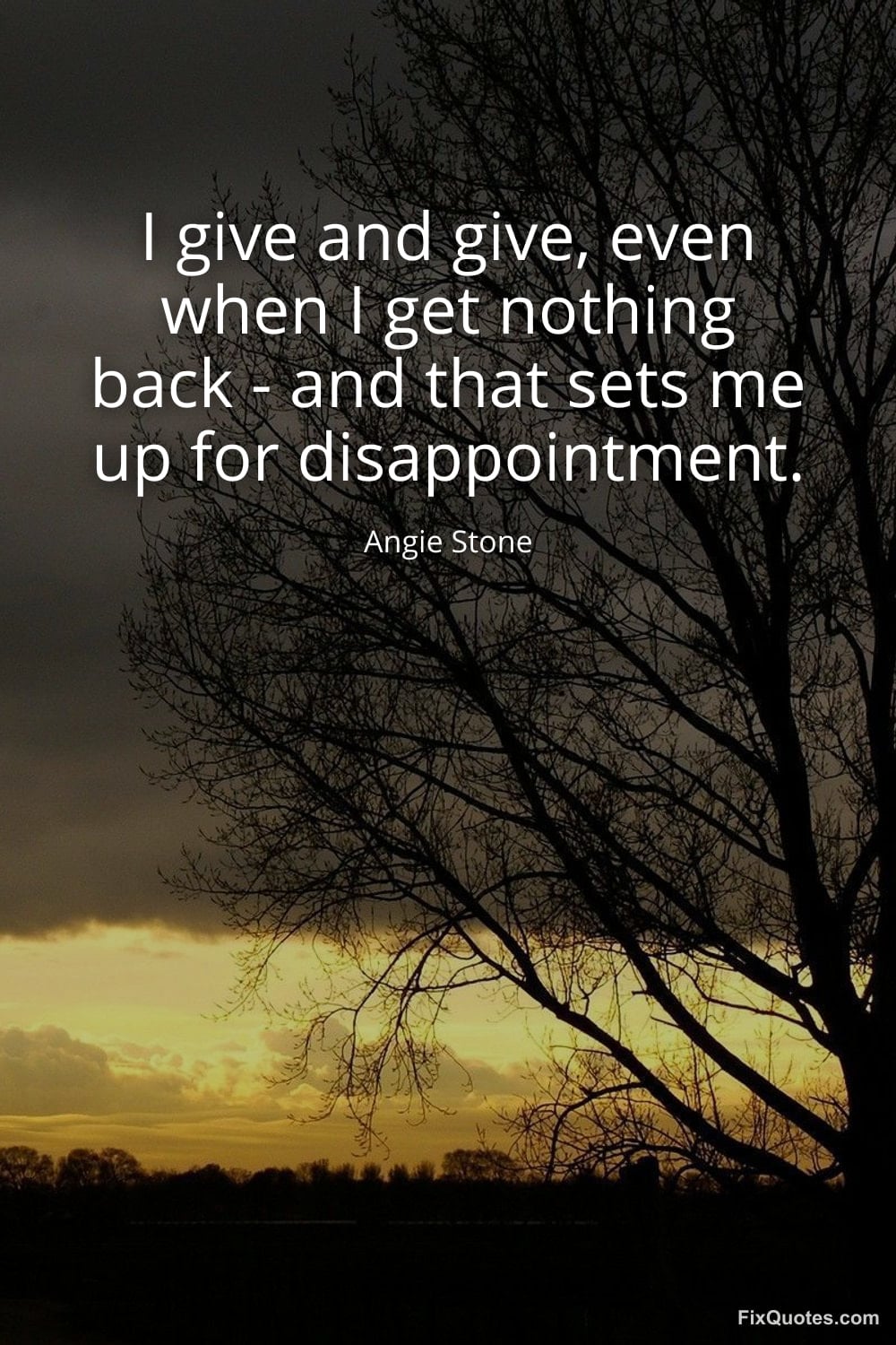 Stone, Angie. (2026, January 16). I give and give, even when I get nothing back - and that sets me up for disappointment. FixQuotes. https://fixquotes.com/quotes/i-give-and-give-even-when-i-get-nothing-back-138141/