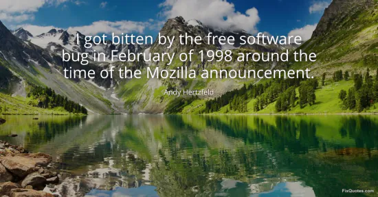 Hertzfeld, Andy. "I got bitten by the free software bug in February of 1998 around the time of the Mozilla announcement." FixQuotes. January 17, 2026. https://fixquotes.com/quotes/i-got-bitten-by-the-free-software-bug-in-february-39549/.