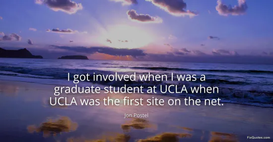 Postel, Jon. (2026, January 16). I got involved when I was a graduate student at UCLA when UCLA was the first site on the net. FixQuotes. https://fixquotes.com/quotes/i-got-involved-when-i-was-a-graduate-student-at-96109/