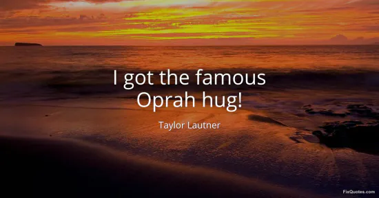A celebrity hug becomes a trophy the second you attach the word "Oprah" to it. Taylor Lautner’s line is airy on the surface - a burst of giddy fan energy - but it’s also a neat snapshot of how fame circulates: not just through projects, but through proximity to the right cultural switchboard. Oprah isn’t merely a talk-show host here; she’s shorthand for mainstream consecration, the kind that turns a young actor’s momentum into a story the public can instantly file under “legit.”