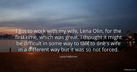 Hallstrom, Lasse. (2026, January 16). I got to work with my wife, Lena Olin, for the first time, which was great. I thought it might be difficult in some way to talk to one's wife in a different way but it was so not forced. FixQuotes. https://fixquotes.com/quotes/i-got-to-work-with-my-wife-lena-olin-for-the-96137/