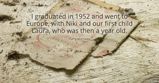 Mathews, Harry. "I graduated in 1952 and went to Europe, with Niki and our first child Laura, who was then a year old." FixQuotes. January 16, 2026. https://fixquotes.com/quotes/i-graduated-in-1952-and-went-to-europe-with-niki-132874/.