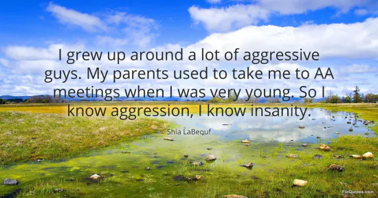 LaBeouf, Shia. (2026, January 16). I grew up around a lot of aggressive guys. My parents used to take me to AA meetings when I was very young. So I know aggression, I know insanity. FixQuotes. https://fixquotes.com/quotes/i-grew-up-around-a-lot-of-aggressive-guys-my-121463/